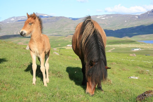 Sætir bossar.................þetta er hún Létt með ungan son sinn og Arðs frá Brautarholti sem að hefur enn ekki fengið nafn. Ýmsar hugmyndir eru í gangi en ekki komin endanlega niðurstaða. Létt bíður nú eftir 30 júlí en þá leggur hún land (kerru) undir fót og fer til hans Glyms frá Skeljabrekku.
